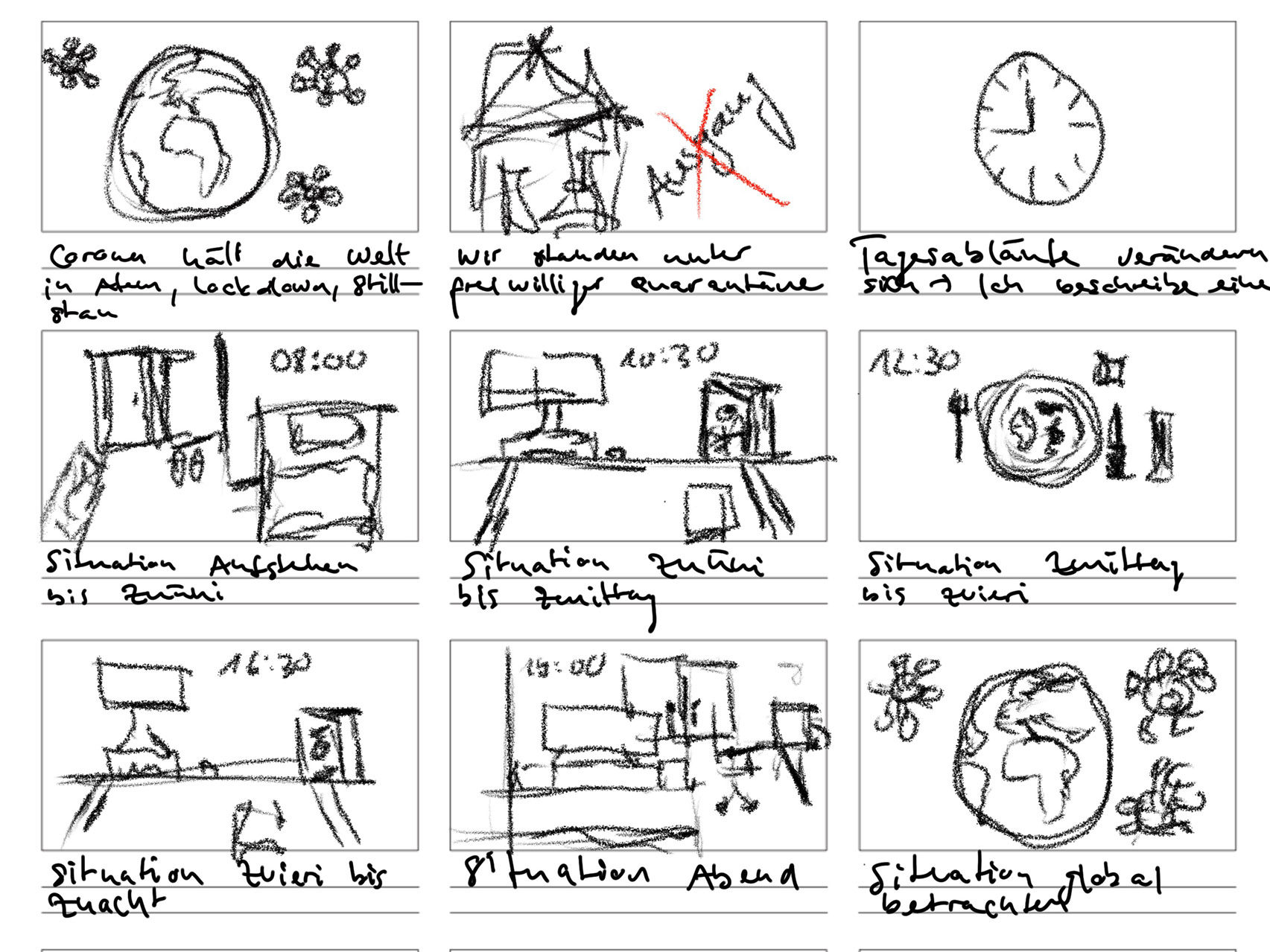 Day 3: work on sketches & texts of the individual Corona reportage story