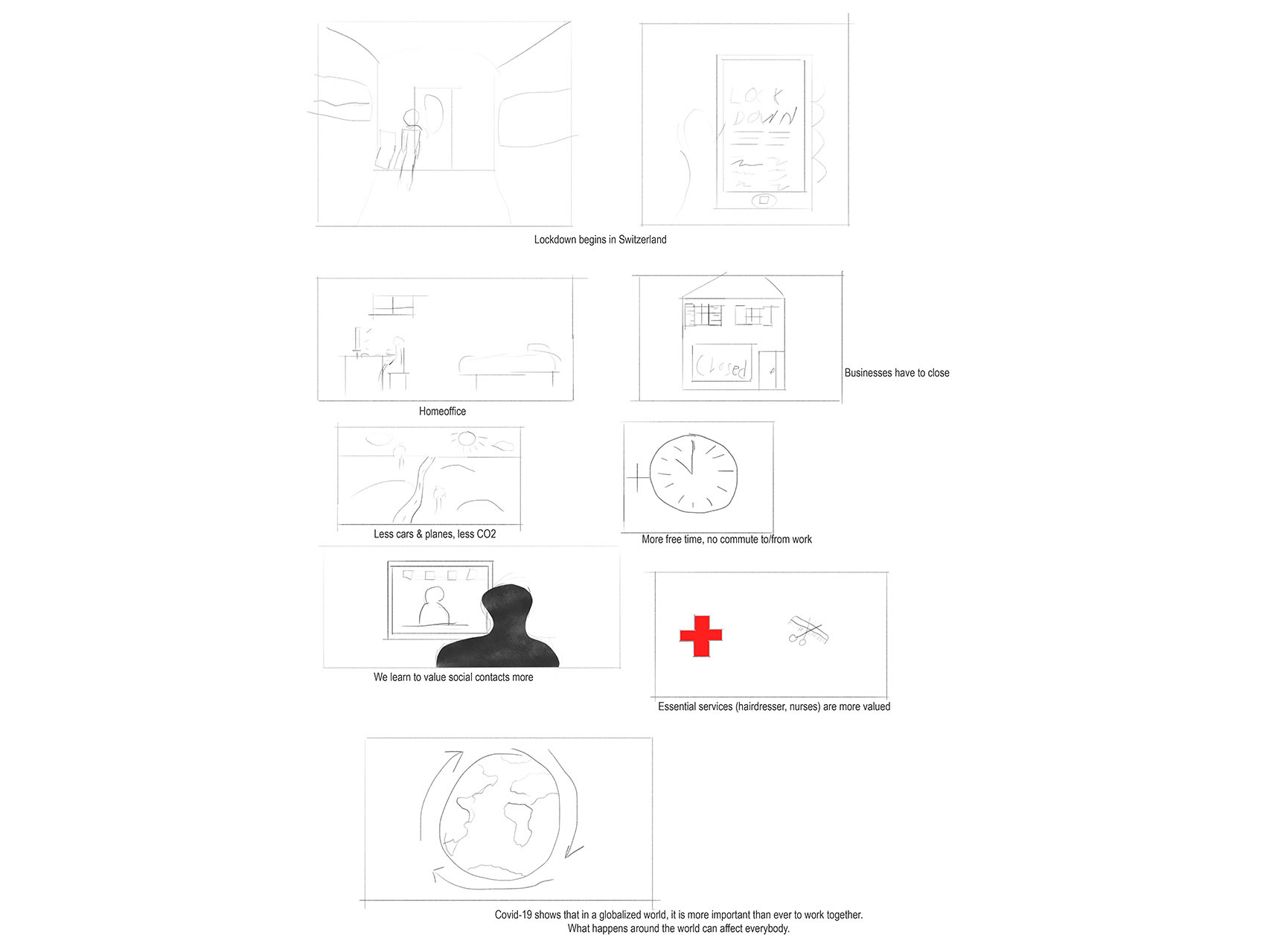 Day 3: work on sketches & texts of the individual Corona reportage story